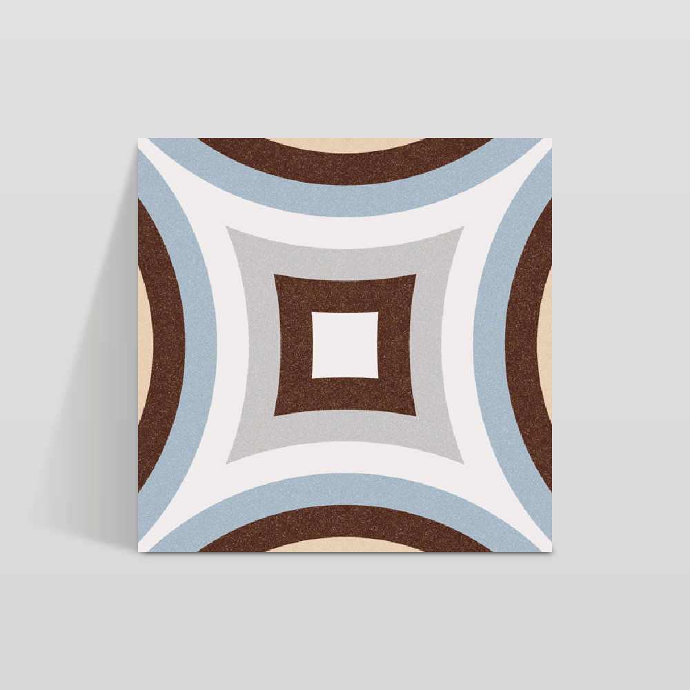 Pavimento de gres hidráulico con efecto hidráulico acabado en mate. Polivalente para suelos interiores y exteriores. Alternativos con un grosor de 8 mm.