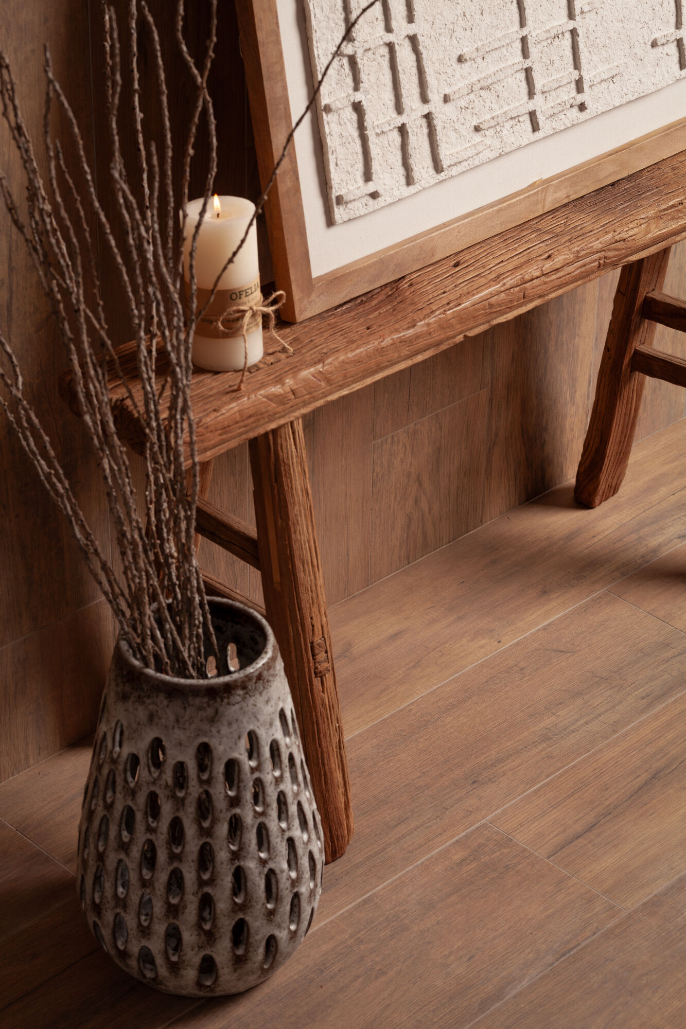 FS Bark, diseñada en colaboración con Francisco Segarra, captura la esencia del roble natural en un cálido tono honey. En formato 20x120 y acabado all in one que permite su uso en interior y exterior, su apariencia vintage aporta un toque acogedor y atemporal a cualquier proyecto de interiorismo. Ideal para quienes buscan calidez y elegancia, FS Bark es la elección perfecta para espacios con personalidad.