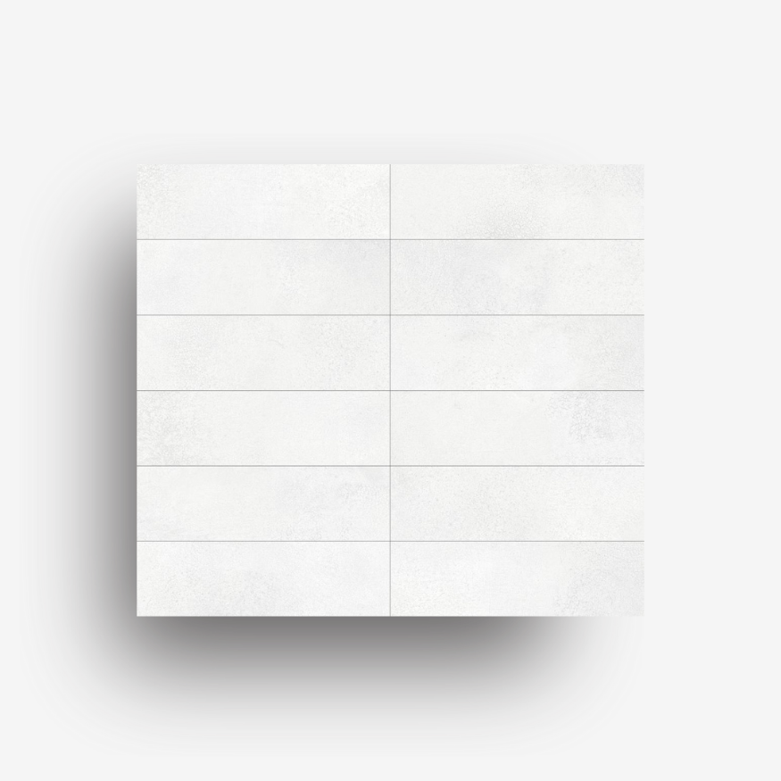 Este azulejo porcelánico en formato 6,4x22,3cm presenta un acabado mate que resalta la pureza y frescura del hielo en tonos fríos. Su formato alargado y superficie mate le otorgan una sofisticación sutil que se adapta a cualquier espacio moderno.