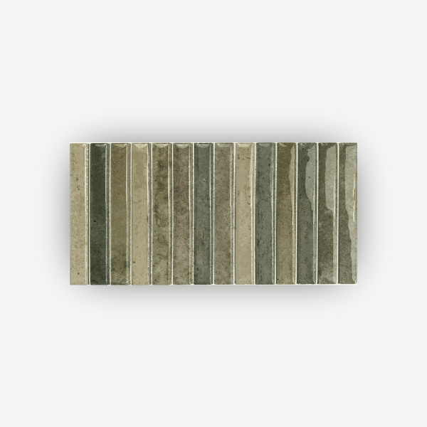Azulejo porcelánico en formato 11,5x23,1 que captura la esencia de la naturaleza con su tonalidad verde musgo, evocando la frescura de los bosques y la serenidad de los paisajes naturales. Su diseño en formato mosaico 'finger' alargado, su acabado ultragloss y su aspecto destonificado, potencian la profundidad del color, creando reflejos dinámicos que varían según la incidencia de la luz. Para crear zonas destacadas en la misma tonalidad, se puede combinar con el nuevo azulejo Agadir del mismo nombre.