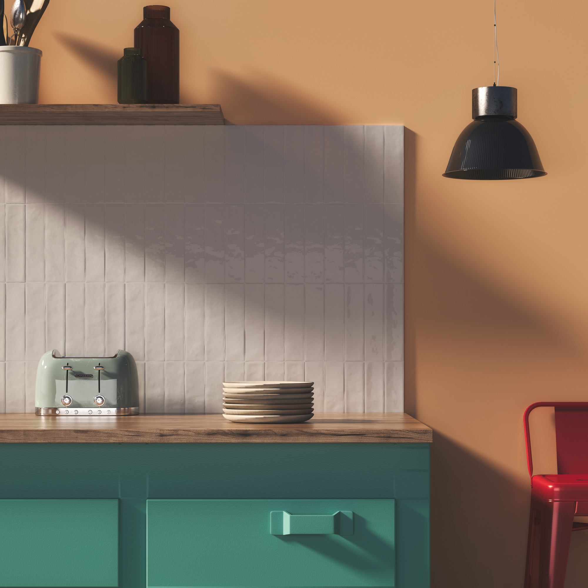 Azulejo cerámico en pasta blanca de formato 6,2x25cm, con textura sutil y acabado brillante velado. Su tonalidad realza las ondulaciones y matices de cada pieza, aportando pureza y luz. Una base serena para espacios luminosos y de estética artesanal. Meknes es una serie cerámica inspirada en la magia del zellige marroquí, que reinterpreta su esencia artesanal a través de una estética refinada y contemporánea. Cada pieza está diseñada con una superficie irregular y un brillo velado, que emula la imperfección del trabajo hecho a mano. Disponible en dos formatos –6,2x25 cm y 12,5x12,5 cm– ambos en pasta blanca y con acabado brillante, esta colección aporta riqueza visual, movimiento y luminosidad a cualquier espacio. Su paleta cromática está formada por siete tonalidades con carácter cerámico que evocan los paisajes de Marruecos, desde tonos cálidos como Miel o Rosa hasta propuestas frescas como Hielo, Verde o Índigo. La suave destonificación del esmalte aporta profundidad cromática y resalta la textura del molde. Meknes es la colección ideal para proyectos que buscan una cerámica con alma artesanal, capaz de envolver los espacios en luz, historia y emoción, manteniendo un equilibrio entre tradición estética y diseño actual.
